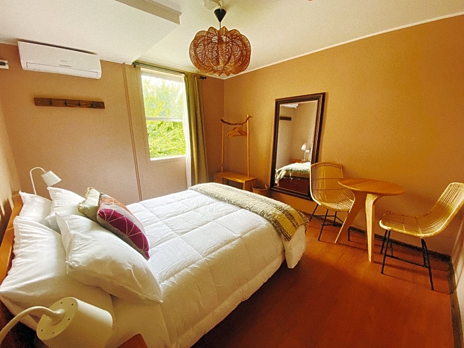 The double room provides air conditioning and parquet floors, as well as a shared bathroom featuring a shower. The unit offers 1 bed.